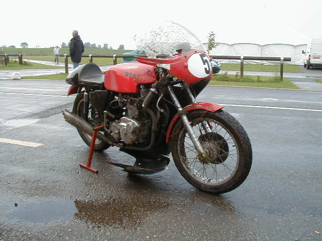 My first race bike ride for nearly 2 years, after my 'bump on the head' and the recovery time. The Triumph (aka 'Big-Un'), my enlarged to 930cc from 750cc triple, had only just gone back together after some major internal detonation damage that occurred while it was being used by Alan Walsh at Rockingham at a CRMC meeting in 2002 during my 'down-time'.
